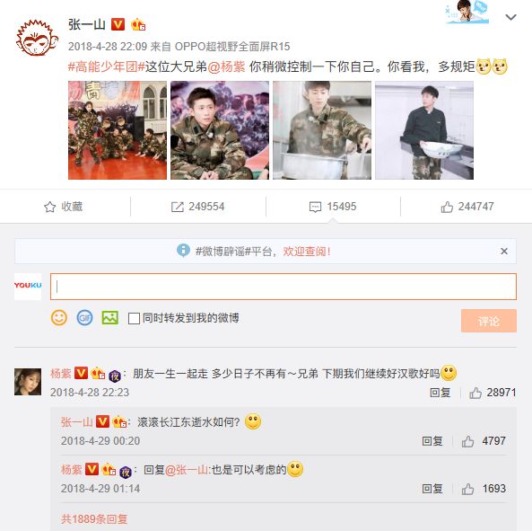 前些天优酷直播的“湖南卫视2018-2019跨年演唱会”中,他们还一起合唱了一首《告白气球》,不过就是这一搭肩膀,硬是唱出了铁哥们儿的感觉,也是没谁了!