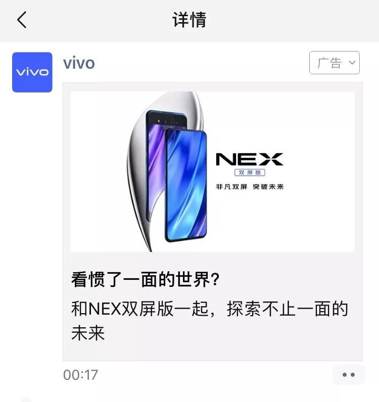在朋友圈外层,vivo这次采用了“看惯了一面的世界?”作为第一视觉呈现,用独特的设问方式吸引受众注意力,品叔认为这样的处理,是很到位的,也很有技巧。