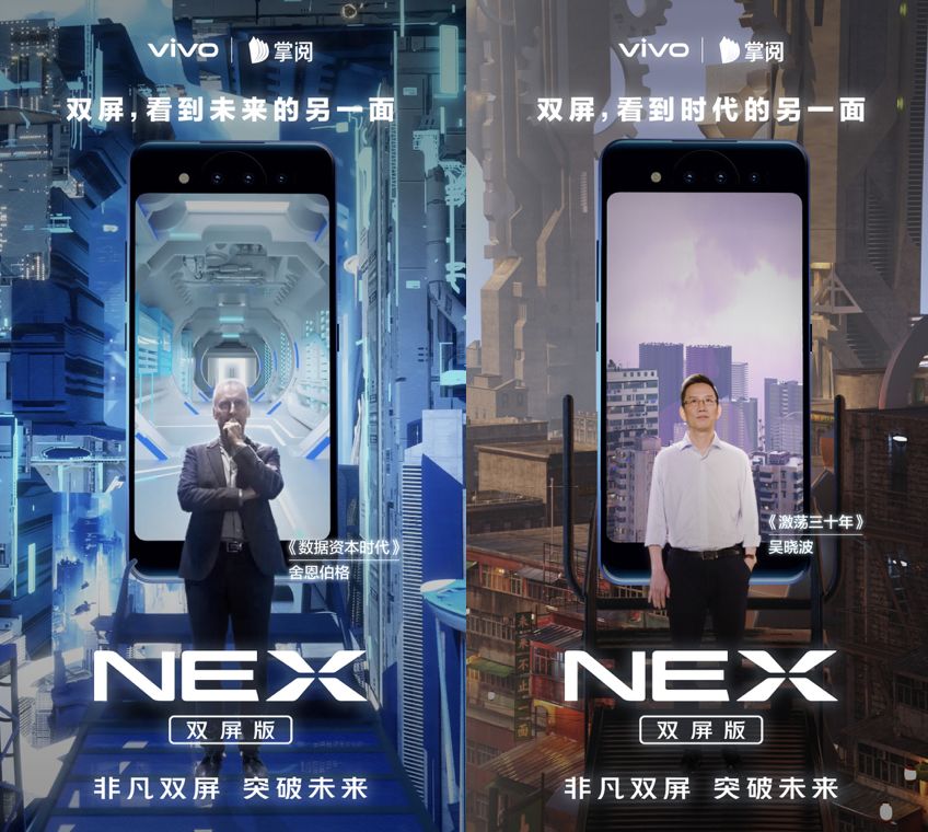 与掌阅的本次深度联合,将 vivo NEX的“双屏”亮点转化为“不止一面”,更以“未来”为话题标签,借助作家和作品作为IP背书,从内容和情感出发,寻求突破口,从而在放大营造话题效应的同时,进一步拉高品牌调性。