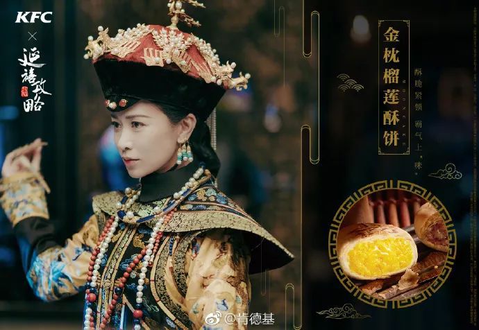 2018年要是没适时牵手延禧这个IP,魏姐恐怕又要热盒饭了。嘉年华整合营销与肯德基盯准中秋节,将肯德基和「延禧攻略」牵在了一起,打造了两支中秋酥饼产品推广视频。其中,娴妃娘娘佘诗曼携榴莲酥饼霸气上“味”,顺嫔娘娘张嘉倪携小鲜肉酥饼鲜嫩亮“香”。讨巧地选择以角色性格带出产品特点,一时圈粉无数。