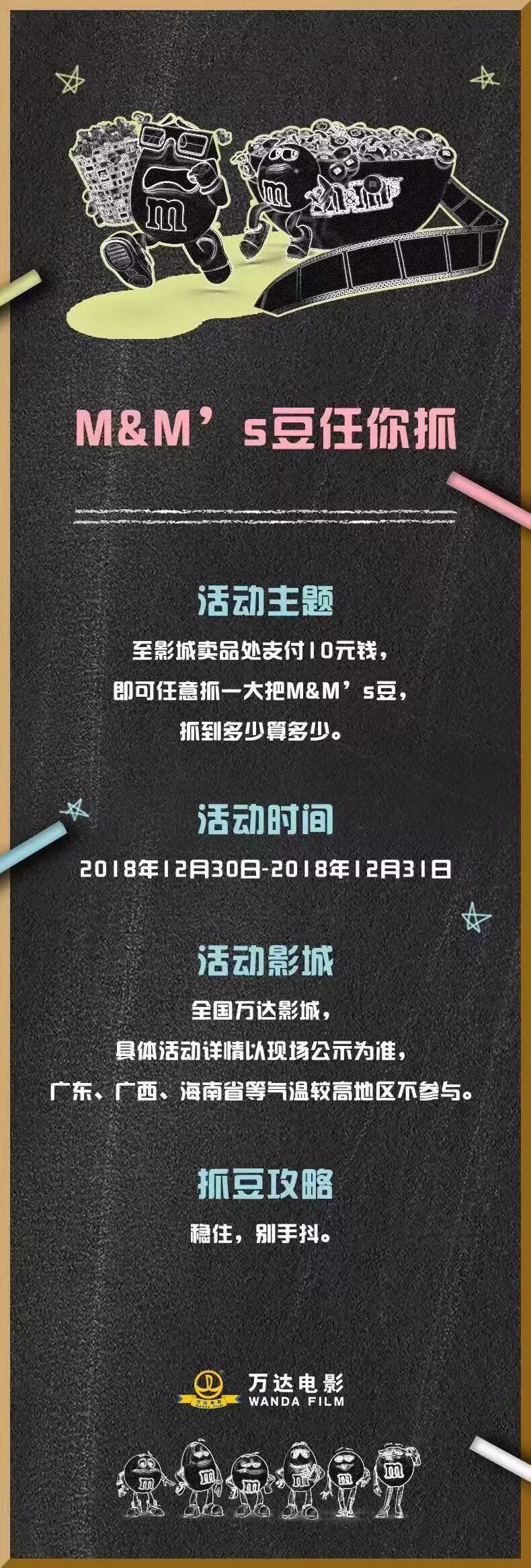 对了,两天后,全国万达影城还要开启“M&M`s豆任你抓”的活动哦,只要10块钱,可任意抓一大把M&M`s豆,抓到多少都归你的!