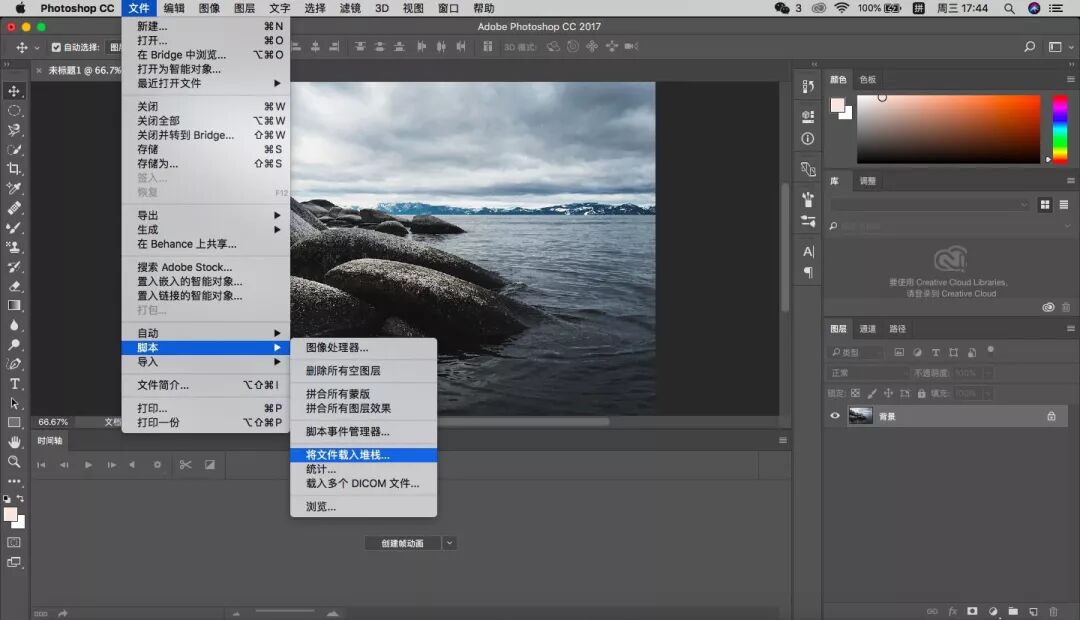 首先,打开Ps,打开文件>脚本>将文件载入堆栈。点击浏览,找到你要使用的照片,全选后点击打开,选择确定。