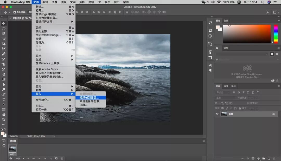 你也可以用短视频来制作GIF动画。如果你使用的是视频文件,首先你需要把视频帧转换为图层。打开文件>导入>视频帧到图层。
