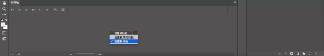点击面板上出现的创建时间轴旁边的小箭头,选择创建帧动画。