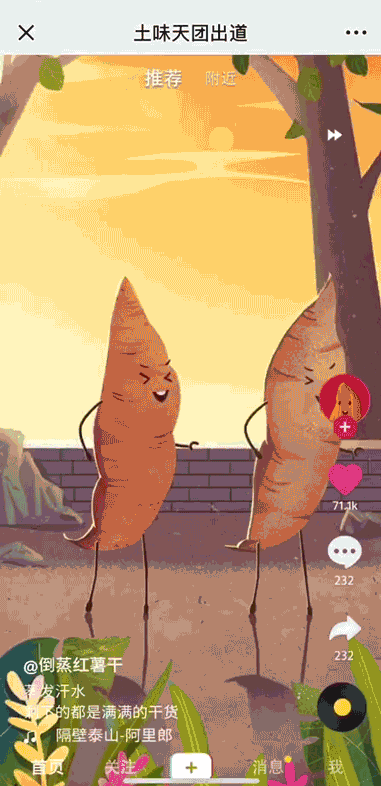 在快闪店之前,碧桂园携抖音商业化在12月10日,发布了一支《土味天团的逆袭》美食类H5,已经率先激活了用户对碧桂园公益“土味特产”的好奇心,引发美食话题在抖音等平台的热议,预热之后的12月13日,碧桂园还顺势发起“鲜酸辣甜”四个味道的挑战赛,激活了更多全国用户的互动参与,大量优质内容得以沉淀。