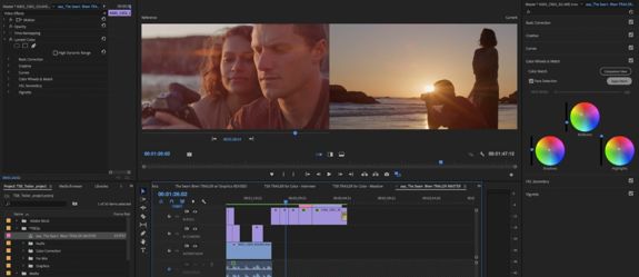 此外,色彩校正是视频编辑过程中另一个耗时且成本高昂的部分。Adobe Premiere AI色彩匹配(Color Match)功能可以将一个镜头的色彩校正设置应用于场景中的其他所有的镜头,特别是人脸识别和肤色匹配。
