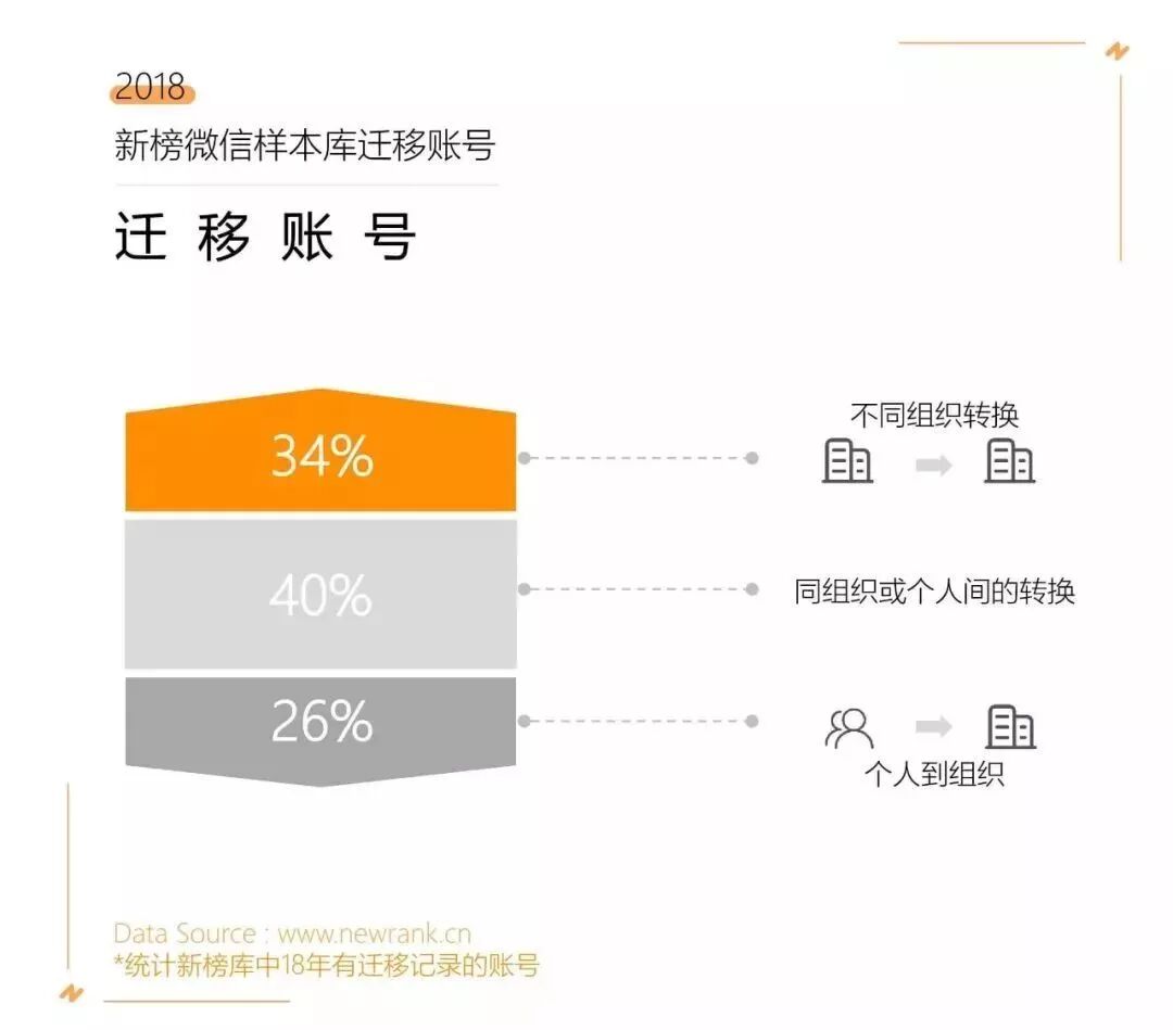 而从新榜的一些账号迁移相关的数据来看,微信公众号的集团化、矩阵化发展也可以初见端倪。