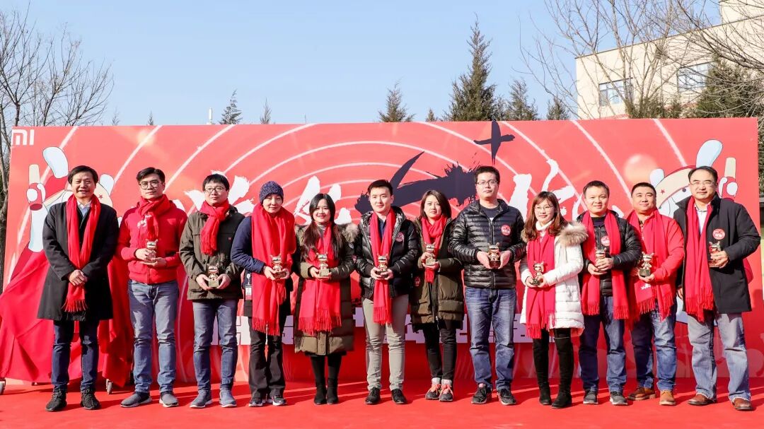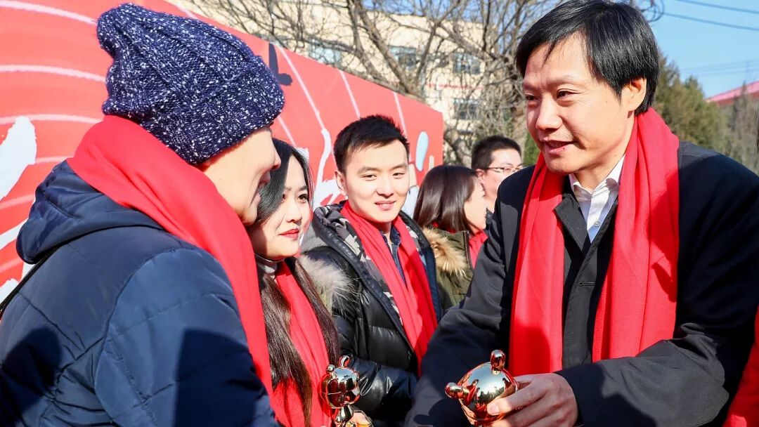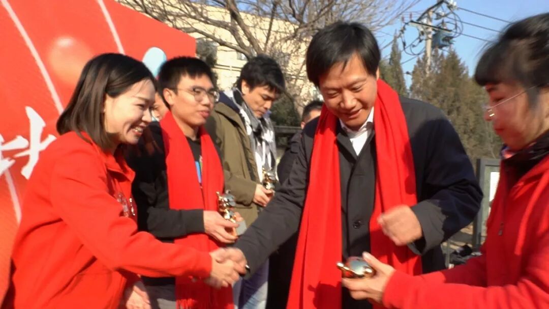 雷军为各部门员工代表颁发纪念金米兔(向右滑动查看更多)