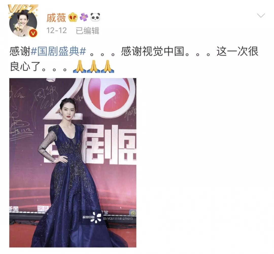 霸气如戚哥在感谢《国剧盛典》的同时还抖了个小激灵,感谢了视觉中国的手下留情,不愧是戚哥,你怎么这么可爱呀!你这么美怎么拍都好看啊!