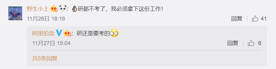 这个招聘活动成功地为阿里拍卖圈了更多年轻受众粉丝,奠定了一个能玩有梗的年轻品牌形象,提升了品牌的好感度。