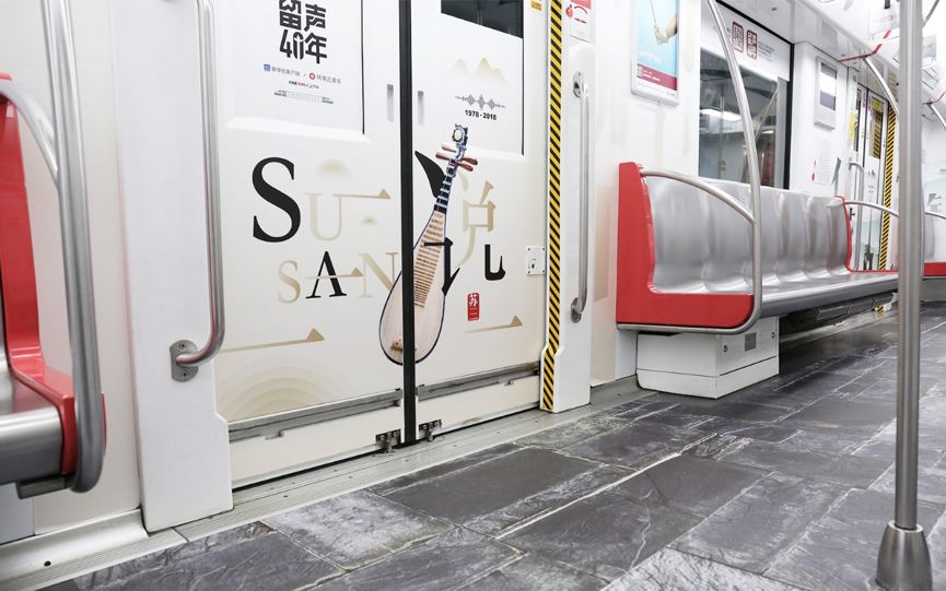 不只是创造一个触及回忆的环境,给用户一个抒发自我的空间也很重要。此前, 新华社客户端曾联合网易云音乐、网易新闻,开启“1978-2018我和年代金曲不得不说的故事”线上征集活动,鼓励大家整理出自己的音乐故事并分享出来。这次的主题展就从其中挑选出了50余个精彩音乐故事在列车和地铁站内展出,唤起乘客别样的“留声记忆”。