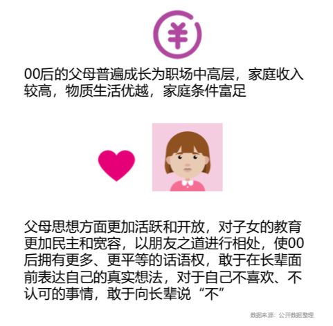 父母学历相对较高,物质生活优越,思想开明,更加重视对子女的全方位培养和教育,使00后成长环境更加开放和自由,敢于主动发表自己的意见和想法。