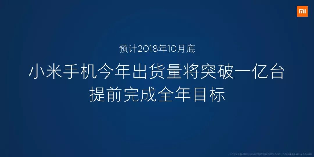 小米MIX3发布前,先宣布一则好消息:预计2018年10月底,小米手机今年出货量将超过1亿台,提前达成全年目标!这是小米发展意义重大的里程碑,业绩增长的基石是小米对技术创新和品质提升的不懈追求。