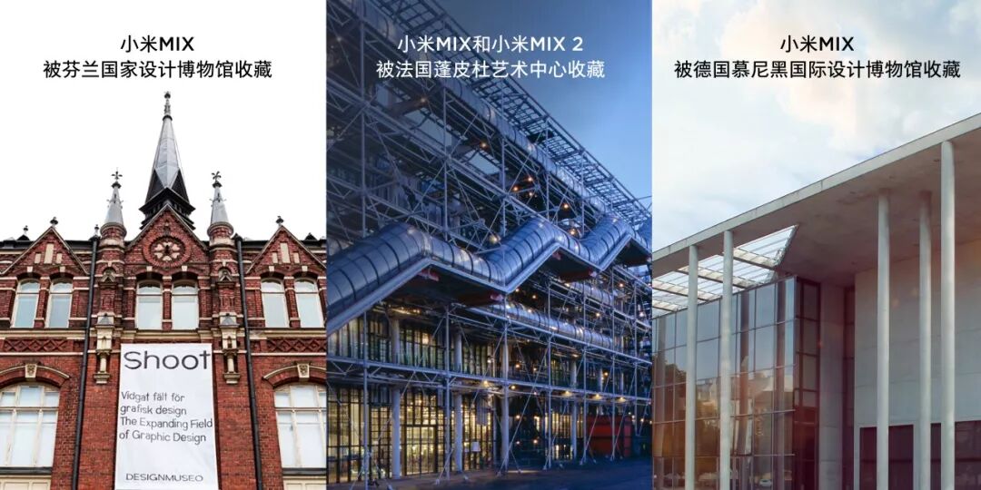 2016年,小米MIX开创了全面屏新时代,凭借全面屏这一突破性的创新设计,小米MIX荣获美国IDEA设计金奖。更被法国蓬皮杜艺术中心、芬兰国家设计博物馆、德国慕尼黑国际设计博物馆三大世界级博物馆收藏,堪称手机中的艺术品。