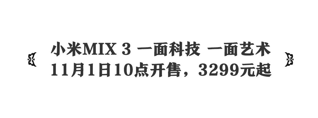 小米MIX3,11月1日10点首卖,3299元起。开创性的磁动力滑盖全面屏,世界前三的拍照体验,最高10GB超大内存,新增宝石蓝陶瓷配色。还有什么?别急,往下看!