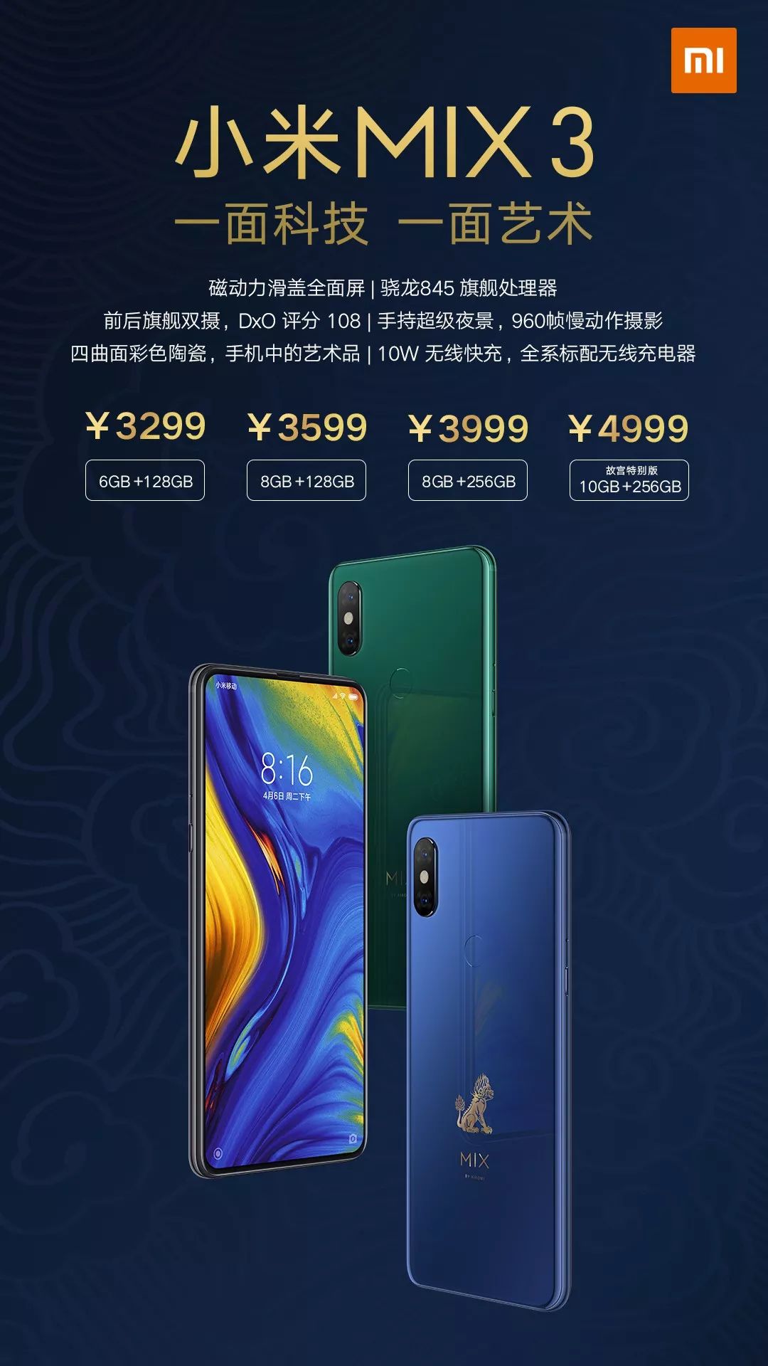 - 小米MIX3 故宫发布!磁动力滑盖全面屏,世界前三的拍照体验,10GB内存+故宫特别版