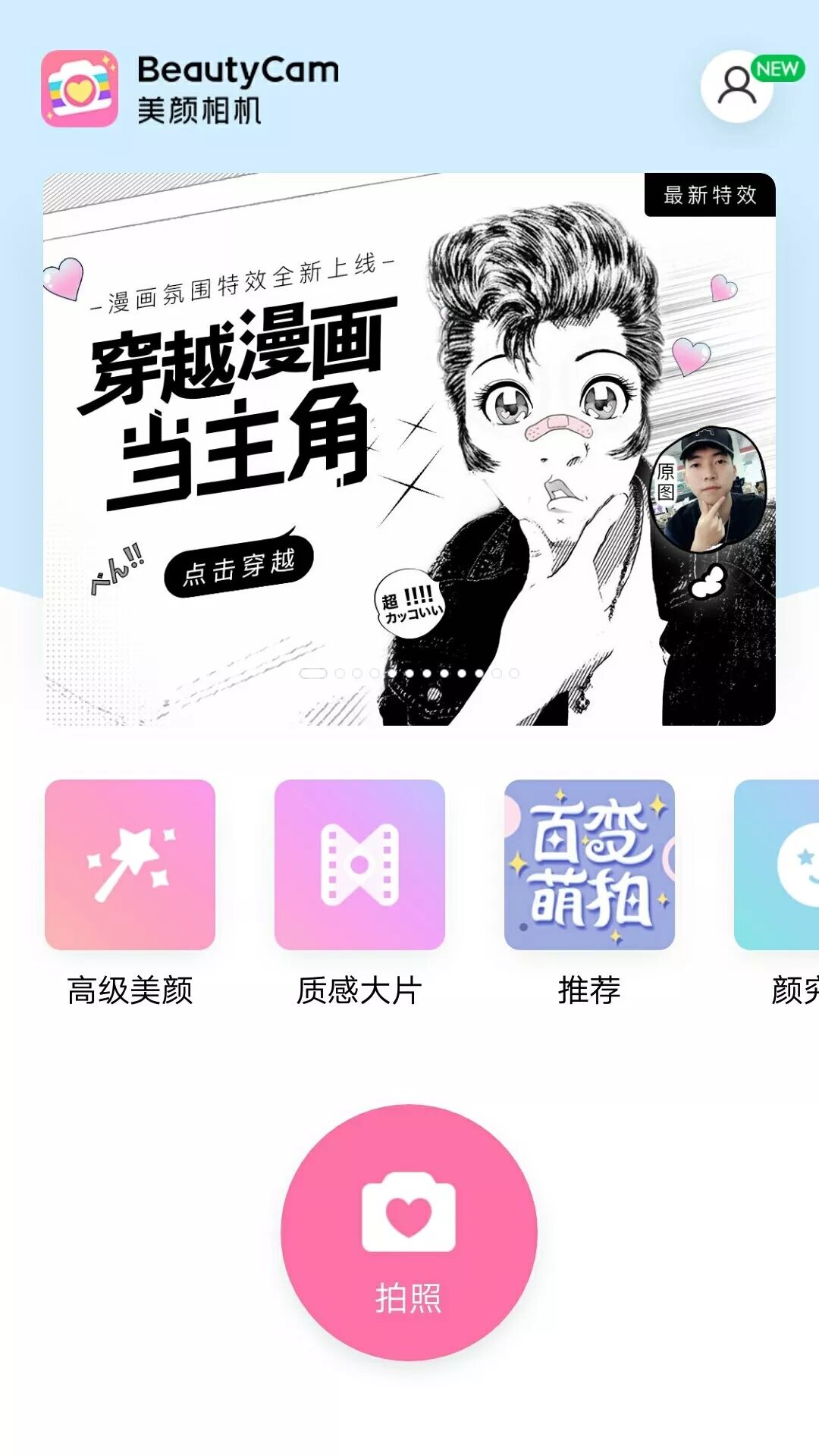 现在打开BeautyCam美颜相机漫画效果自拍