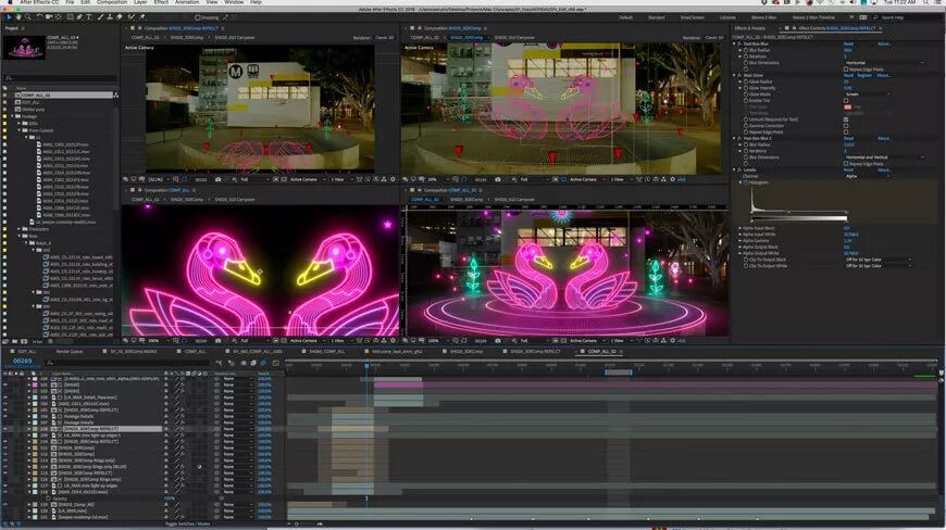 设计师用Ae分离3D空间里的插图,并为它们各自加上光线等特征;使用RED镜头和Ae来调整图层,以及运用Ae摄像机追踪器对场景进行着色或者调整。