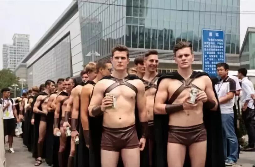 有很多品牌做活动做展览都会请模特站台,这非常司空见惯。2015年,北京一个网红甜品请了几十位外籍男模,穿上斯巴达服装,浩浩荡荡走上街头给消费者派送产品。