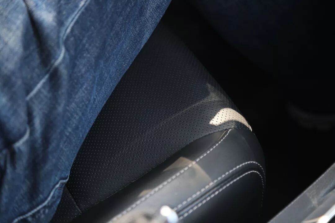 座椅采用了拼接式设计,座垫位置采用打孔皮革包裹,更透气,夏天不容易出汗。