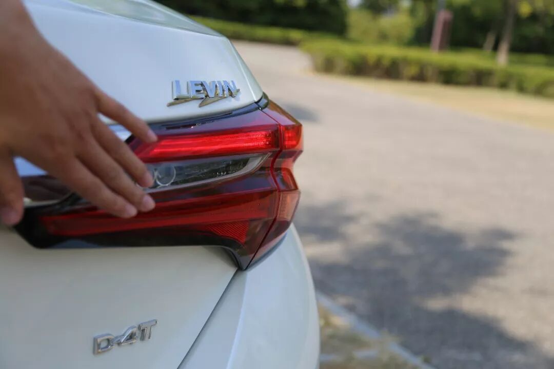 就比如雷凌的前大灯和尾灯设计,许先生就觉得很不错,有设计感,尤其是尾灯样式,中间一道凹槽给它增添了很多的时尚感,还感觉很凌厉,让人很喜欢。