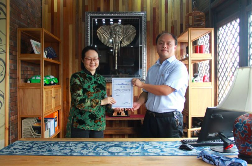 春蔚接过“镇长”聘书
