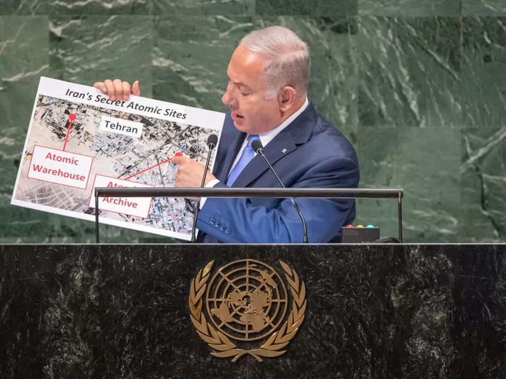 联合国大会73届会议今天下午的一般性辩论中,以色列总理内塔尼亚胡发表了长篇演讲,几乎通篇都在指责伊朗,称伊朗不寻求核武器是一个谎言。他为此展示了据所说从未公开过的照片,所显示的是位于伊朗德黑兰的一个秘密原子仓库,并称里面有大约300吨与核有关的设备和材料。内塔尼亚胡表示,国际原子能机构对以色列此前提供的一些伊朗从事与核有关活动的证据不予采纳。他现在公开要求国际原子能机构前往这一地区,核查这个仓库。