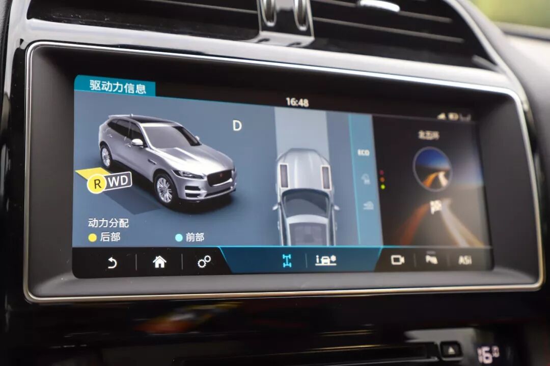大部分时间,后轴会承担着90%的动力输出,在极限情况下,理论上前后轮会以50:50的动力输出应对复杂路况。铝制车身和下盘大量铝制部件的使用,让F-PACE摆脱了以往SUV的沉重,佐以运动化的调校,让你在大部分时间以为开了一台加高底盘的轿车,而非传统认知里的中型SUV。
