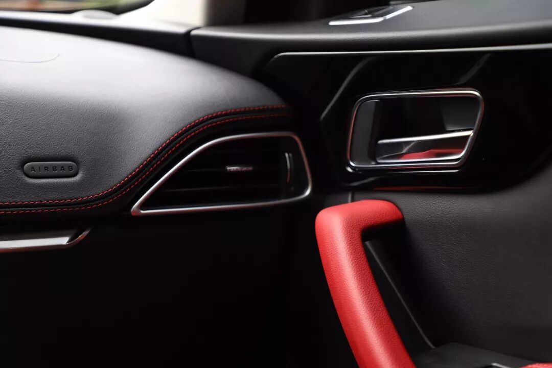 相对于更加大胆的外观设计来说,内饰方面的整体设计上还是有些规矩保守了。好在黑红颜色内饰的搭配下,所触之处用大面积真皮包覆,棱角之处再加上双缝线密密的修饰,保留了传统的豪华感。