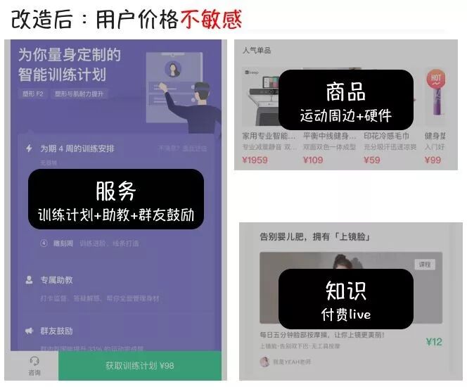 羊毛出在羊身上:宰哪只羊?把内容变成实物或者变成服务。既然用户不愿意为“一直都免费”的训练付钱,那就衍生出用户愿意付钱的产品。
