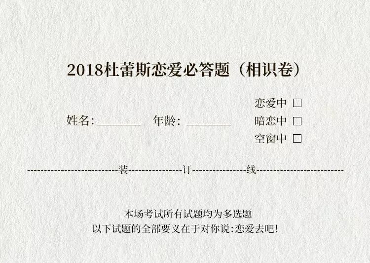 • 2018杜蕾斯恋爱考试第一卷 ・ 相识篇