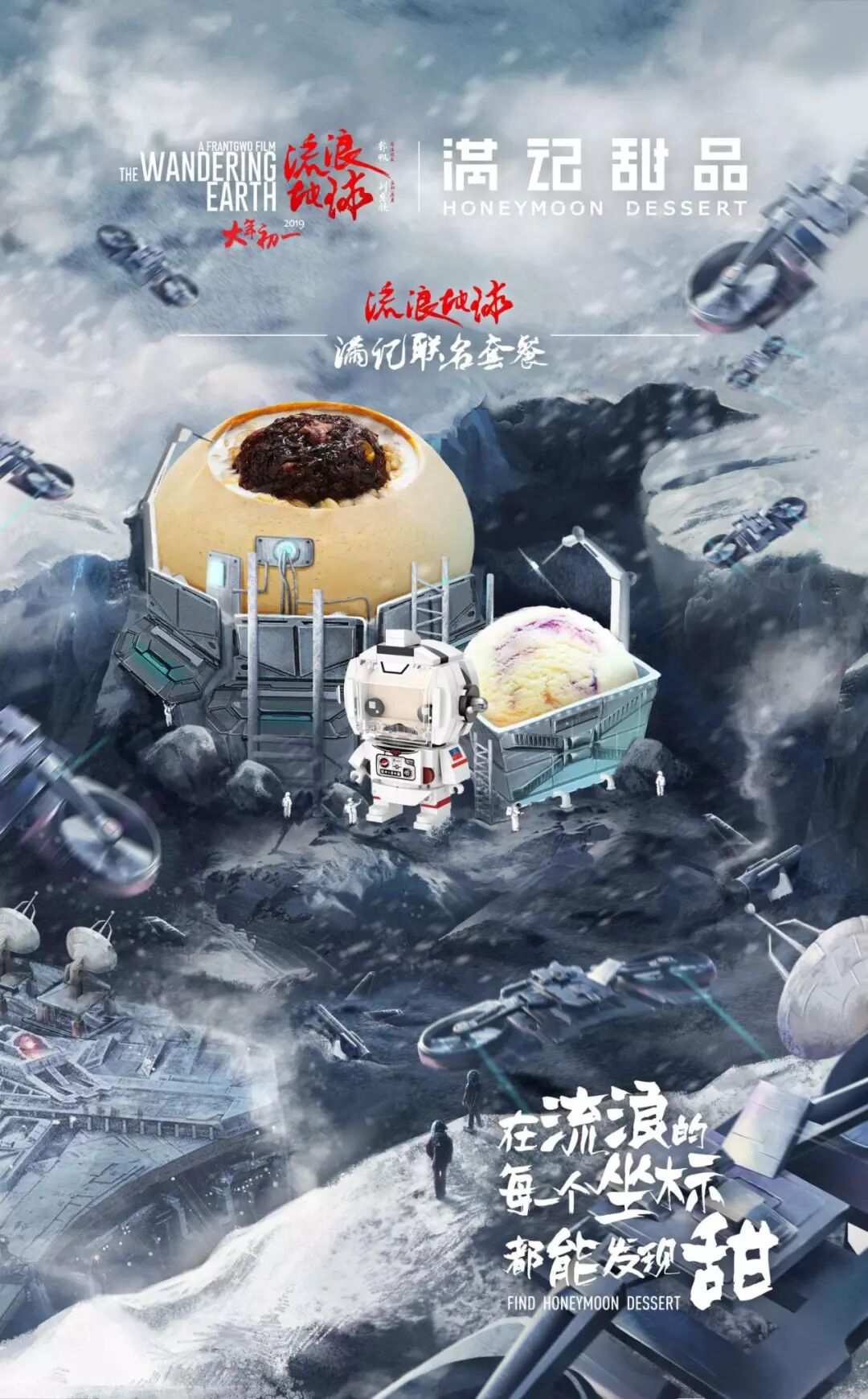 除了话题新颖,也要抓住时间机遇。这个春节最火的话题,那一定非《流浪地球》莫属了。眼光独到的满记,狠狠地抓住了这个机会,和电影联名,完美地结合了营销的主题。