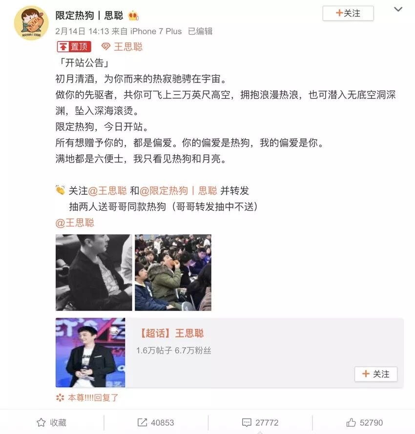 - ★情人节各艺人齐撒糖n★王思聪个站成立n★《东宫》上线n★《以团》首次公演开启n★《知否》迎来大结局