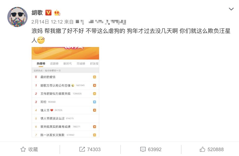 2019的情人节在一个自称“圈内人”的爆料下显得格外刺激,看这架势是非要逼着大家伙在情人节这天,明里暗里的澄清自己是个“单身汪”才肯作罢。