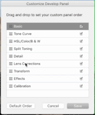 重新启动 Lightroom Classic,在打开的确认对话框中按新顺序查看“修改照片”面板。