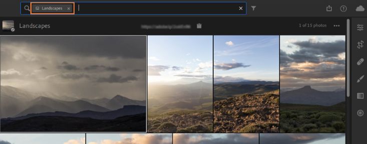 在搜索栏中开始搜索时,新版本的Lightroom CC 会自动添加一个与你目前正在查看的相册或文件夹有关的搜索“方块”。例如,如果你正在查看名为“风景”的相册照片,那么当你开始在搜索栏中键入搜索关键字时,该功能会自动添加一个适用于此相册的搜索 “方块”。