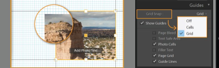 在移动照片时,将根据所选的设置快速对齐位置。默认情况下,网格对齐选项设置为单元格。