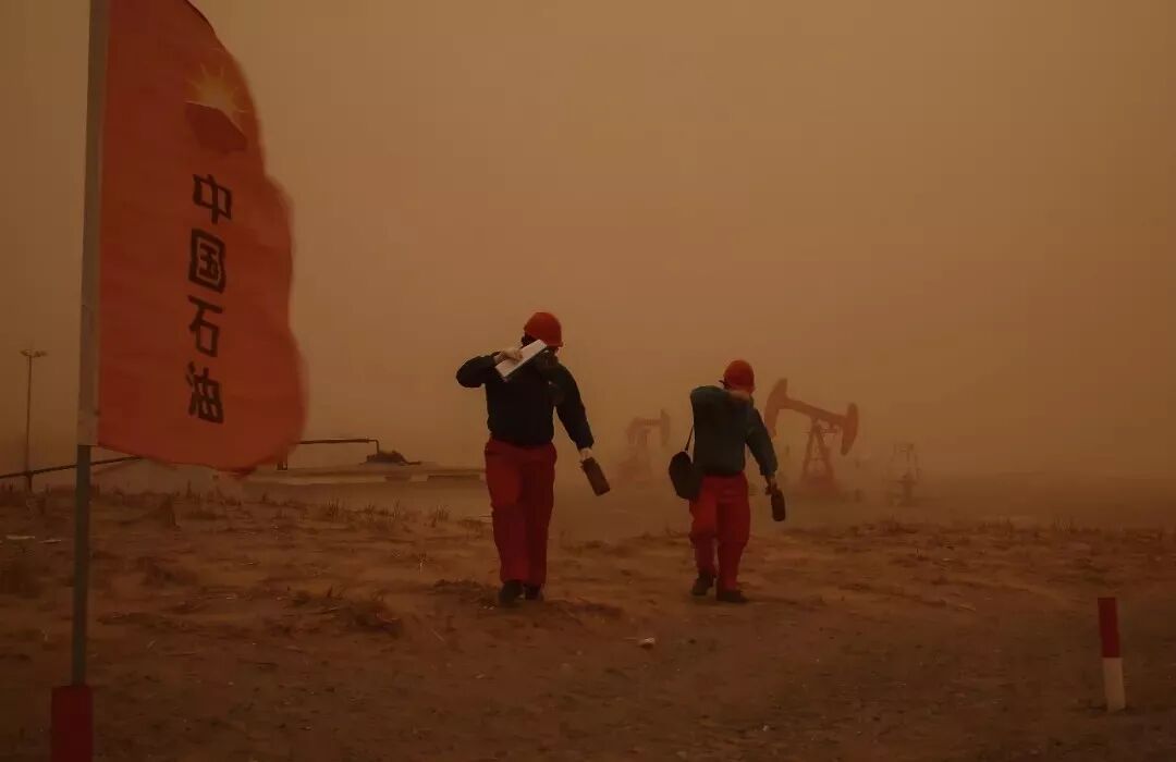 每天他们都是倒班制,24小时不停工作,半夜2点采油工还在集油站内巡检;面对如家常便饭一样的沙尘暴,铺天盖地的狂沙总让人感到迷失,感到绝望;而接近50度的高温也没有让他们停止步伐。检修集油站的过滤罐,下到罐内清理滤料,不到五分钟,进入罐内的采油工已经汗流如注。