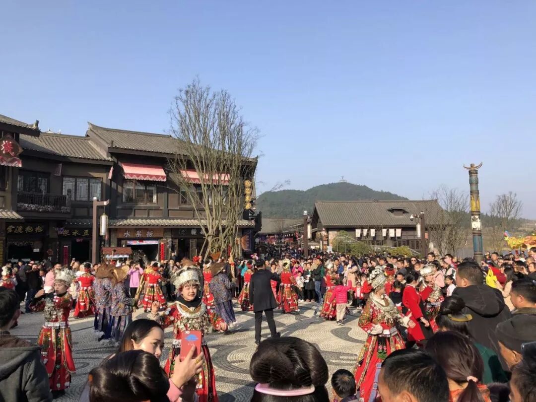 春节长假期间,丹寨万达小镇开展新春大庙会、二人转喜乐会、民族山歌欢唱新春、财神爷派福等欢乐祥和、充满民族特色的系列活动,年味十足,吸引超过20万人次的全国各地游客到小镇欢度春节。