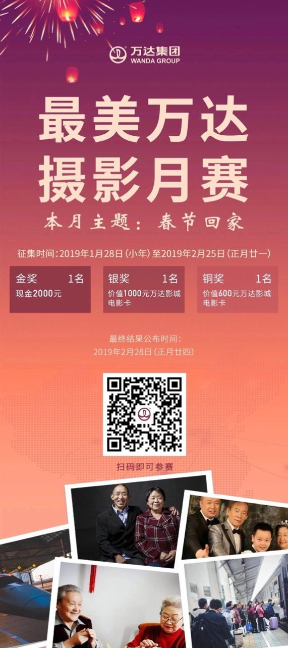 最动人的,其实还是你和故乡、父母、亲友割不断的真情。春节期间,“最美万达”摄影月赛正式开启,首期主题为“回家过年”,邀请你拍下春节里幸福、温暖、感动的瞬间,上传活动平台分享参赛。