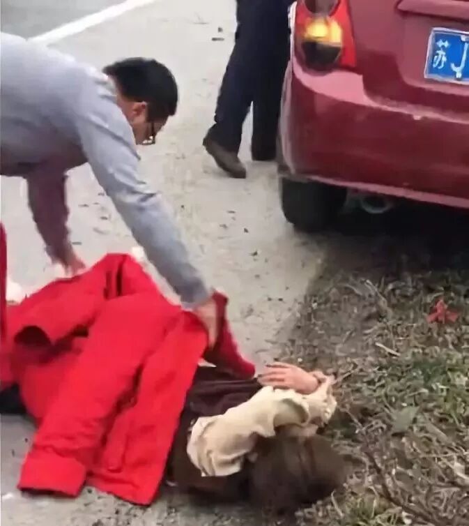 当时我们为了赶到东台参加演艺节目,身上都穿着演出服装,车祸后身上的寒冷可想而知,是这位红色羽绒衫的主人把自己身上的衣服脱下盖在我身上。