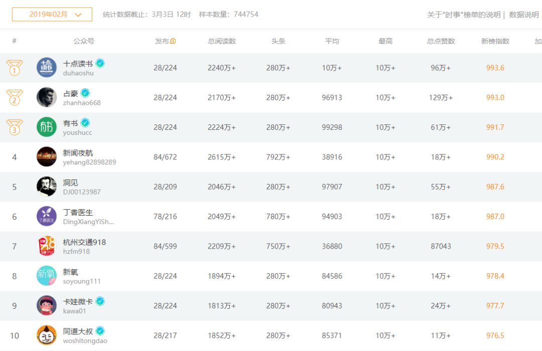 新榜公众号2月榜TOP10中情感类账号占据较大比重