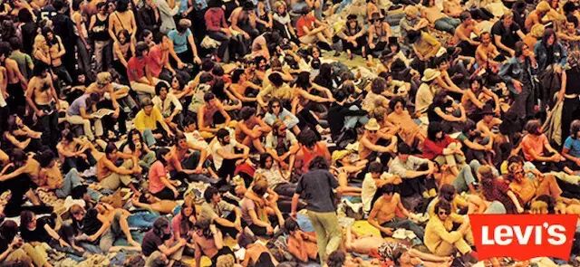 满城年轻人身穿Levi`s牛仔裤,倡导爱与和平