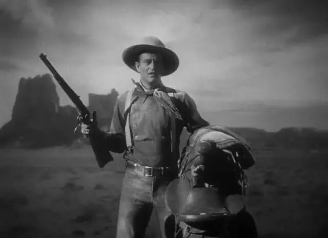 1939年,奥斯卡金像奖电影《关山飞渡》中,荧幕硬汉约翰·韦恩(John Wayne)以牛仔打扮的出场相当拉风: