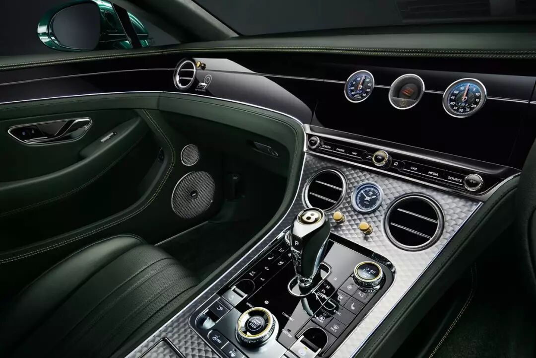 该车型由宾利汽车个性化定制部门Mulliner倾力打造,限量匠造100台。座舱采用经典真皮内饰设计风格,致敬宾利品牌在“宾利小子”时代征战赛场的经典赛车。全新欧陆GT 9号Mulliner特别版座舱有墨绿或鲸鱼黑两种颜色选择。座椅头枕和车门饰板均点缀双飞翼“B”字徽标图案,与1930年宾利Blower车型的细节设计一脉相承。独特的British Jaeger仪表板时钟造型灵感基于1930年的经典赛车仪表盘。车辆迎宾踏板装饰有“1 of 100”专属字样,尽显典藏价值。