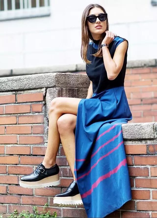 最后我们来说一下厚底鞋怎么挑。首先:鞋底的厚度要和你的身材匹配,任何事情都讲比例,个儿矮的人强行超厚底,视觉效果会非常难看。其次:尽量选拼色的设计。优秀的设计就是明明鞋底很厚,却又让你看不出来它的厚,还能实际增高^^
