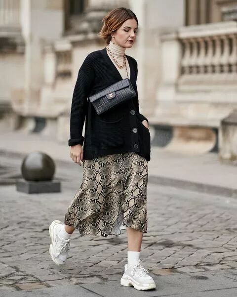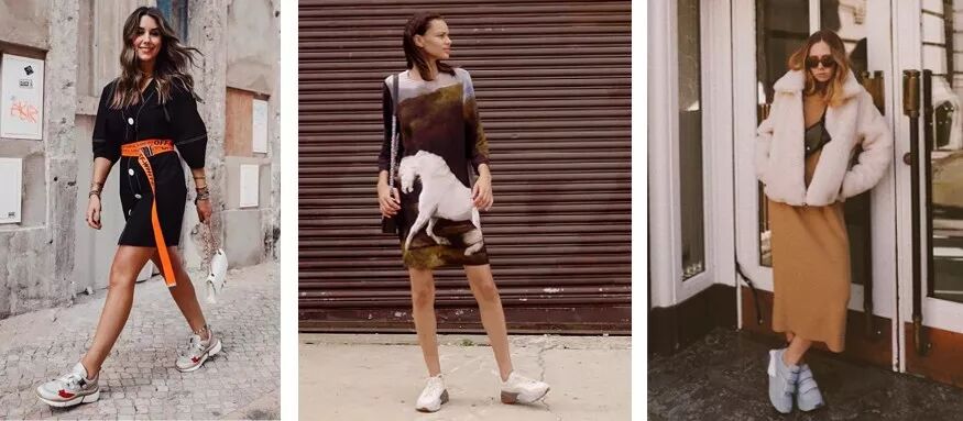 △厚底运动鞋搭配裙子也没话说,就是好看~