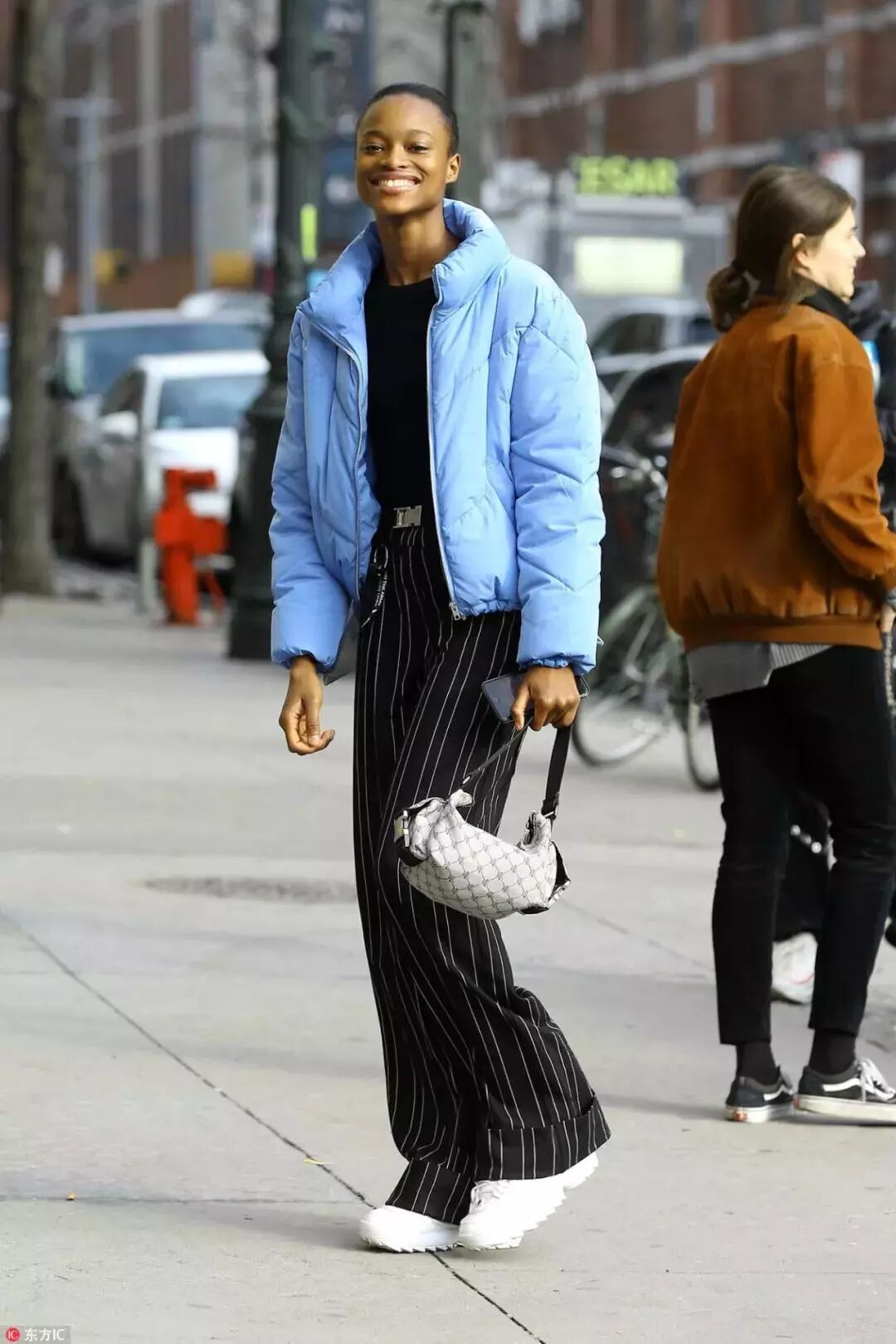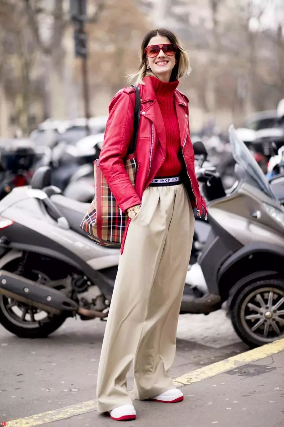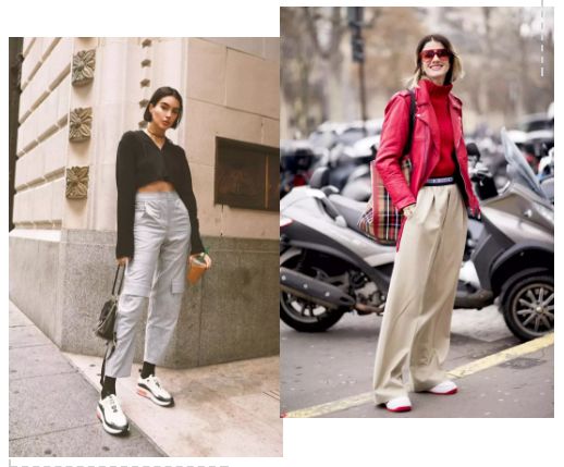 △厚底运动鞋+阔腿裤就更加好看了,不仅能帮你暗搓搓地提高腰线,拔身高,同时还能避免阔腿一直拖地的状态。