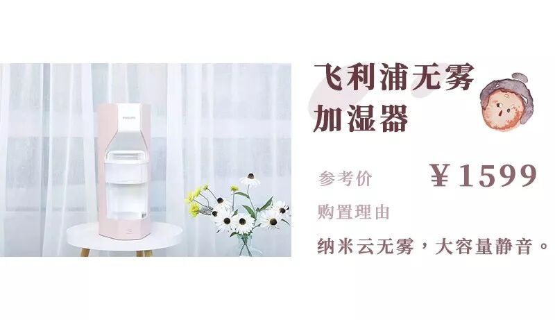 首先大电器是送礼的好选择,不管南北方家里都是需要加湿的。尤其对女生来说,家里湿度够,皮肤才能真的好~最近想入手的就是飞利浦的这款HU4906无雾加湿器。最喜欢的就是无雾加湿效果,360度自然均匀加湿,滋润每一寸肌肤,同时保证周围环境的干爽。没有积水,也不会产生白尘水渍,弄脏家具。