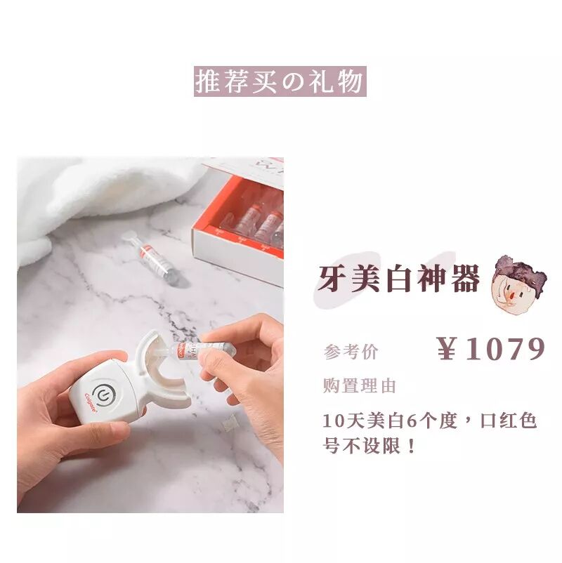 想要口红涂的好看,一定要牙齿白!像吉克隽逸这种大白牙,就算芭比粉也能hold住。这次就给大家推荐一下吉克隽逸自用的高露洁美牙仪,它的原理跟医院的冷光美白相同,拥有它在家就能美白牙齿,在牙托内挤如美白安瓶,打开蓝光放进口中等待10分钟即可,没有任何异物感,就像宝宝的奶嘴一样柔软舒适。连续用完10天就能看出明显变白,压箱底的踩雷色号统统翻出来消化掉!
